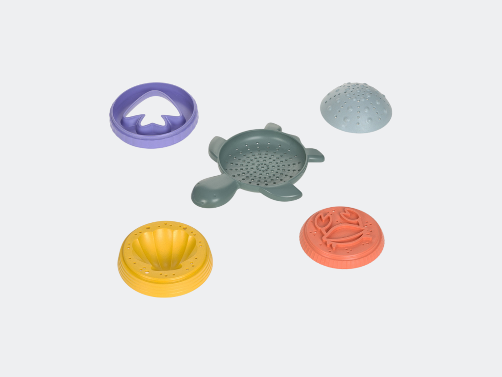 - As peças individuais também podem ser usados como peneira e para fazer formas na areia;