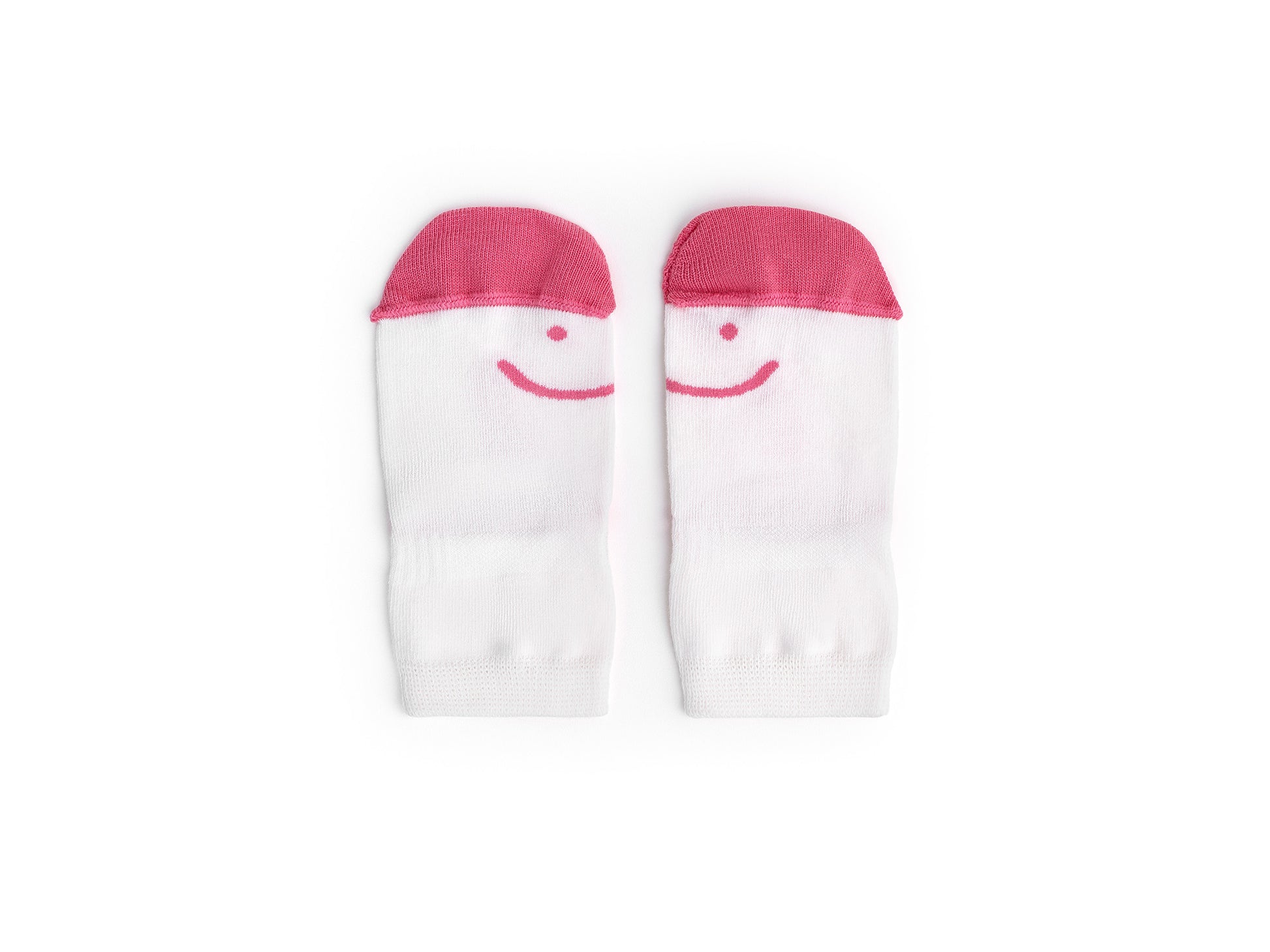 Ao contrário das meias convencionais, as meias Tip Toey Joey são feitas para o pé direito e o pé esquerdo, evitando apertar os dedinhos e dando espaço para que se mexam livremente, como se estivessem descalços! Para saber se está a colocar corretamente em cada pé, basta olhar para o sorriso que forma quando junta os dois pezinhos!