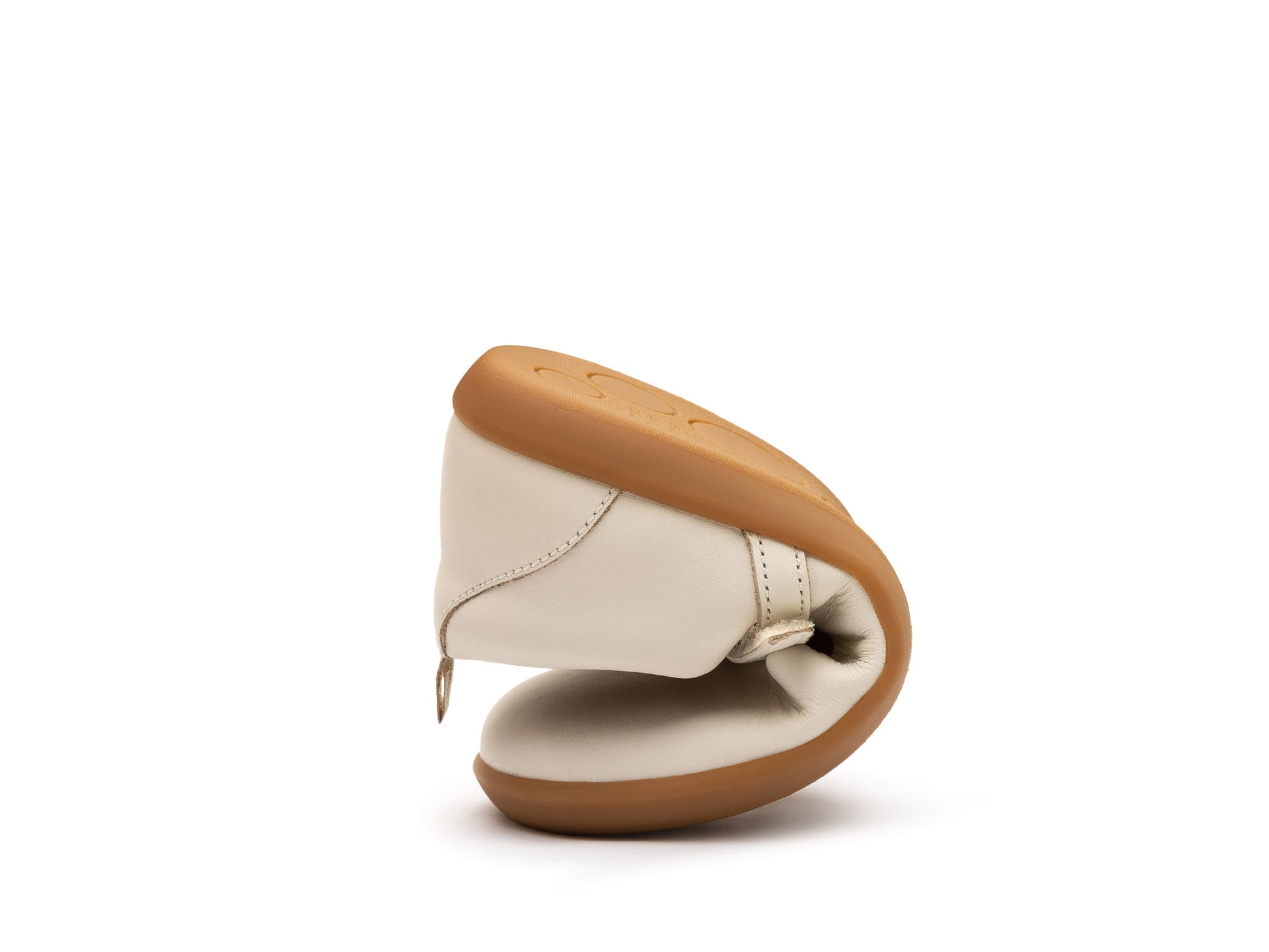 Feitas de couro extra macio seguro e não tóxico. Palmilha biodegradável e antibacteriana forrada em couro e sola de borracha natural macia e flexível.