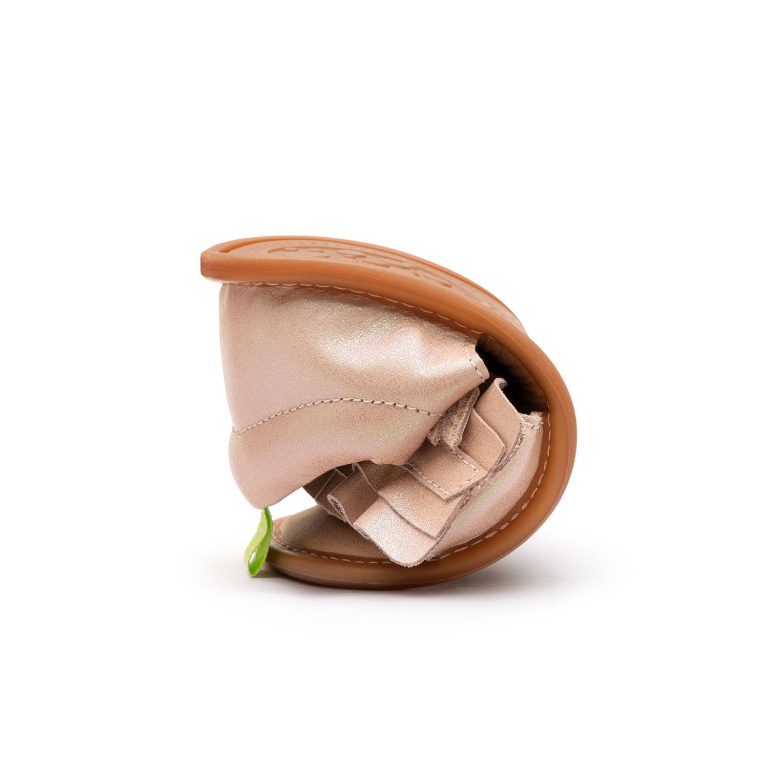 Feitas de couro extra macio seguro e não tóxico. Palmilha biodegradável e antibacteriana forrada em couro e sola de borracha natural macia e flexível.