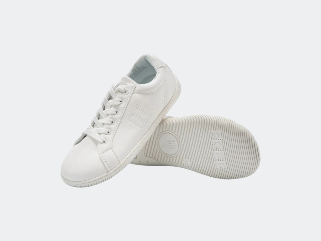 Ténis minimalista cuja biqueira larga, sola totalmente plana (zero drop) e flexibilidade, beneficiam a anatomia e posição do pé.