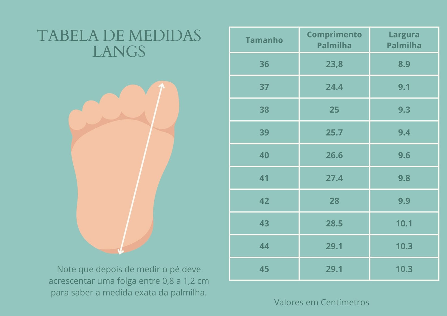 Em pé, contormar os pés numa folha e medir desde o centro do calcanhar até dedo maior. Depois basta consultar o guia de tamanhos de cada marca.
