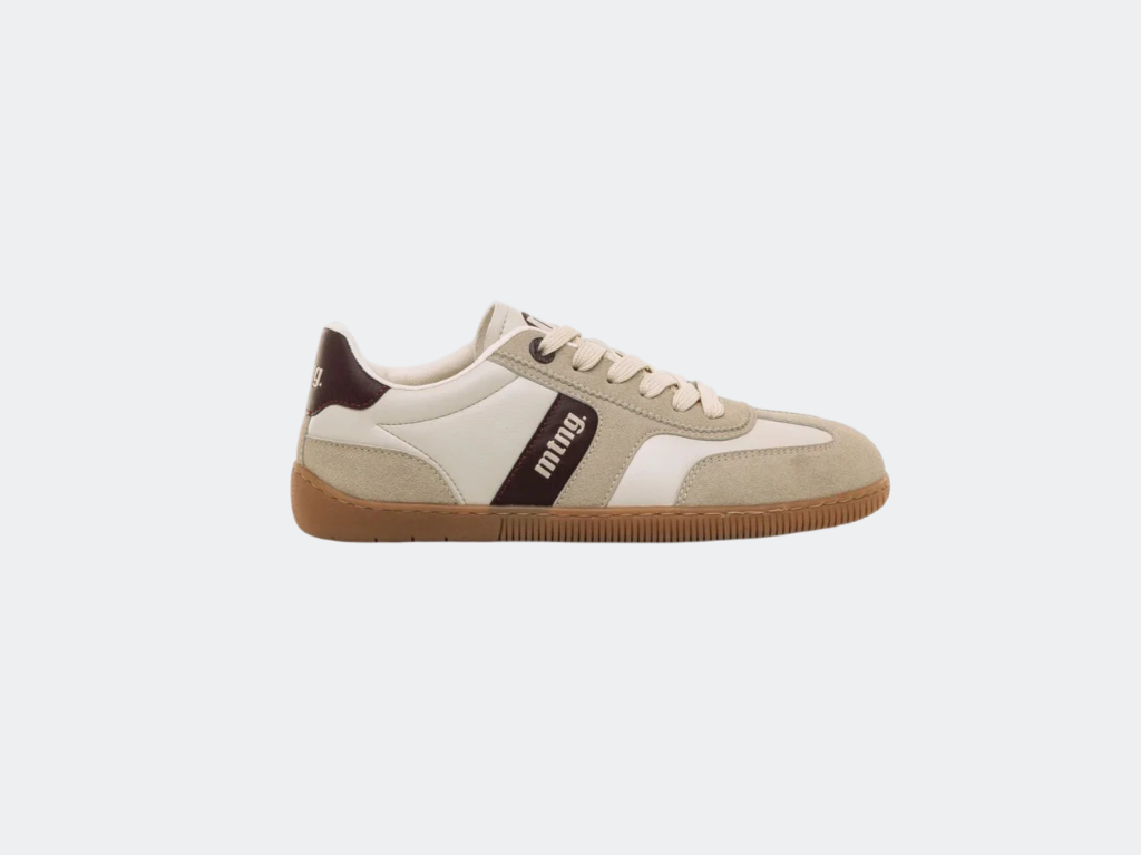 Ténis femininos Mtng Free Aria, de estilo casual, com detalhes em castanho e sola caramelo de inspiração retro. Ténis minimalista cuja a biqueira larga, a sola totalmente plana (zero drop) e a flexibilidade, beneficiam a anatomia e posição do pé.