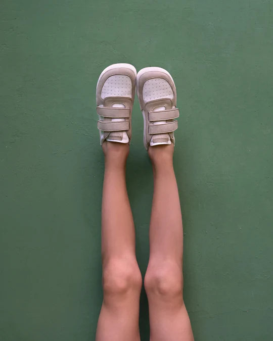- Sola fina sem desnível para proteger cada passo sem afetar o desenvolvimento dos pés;